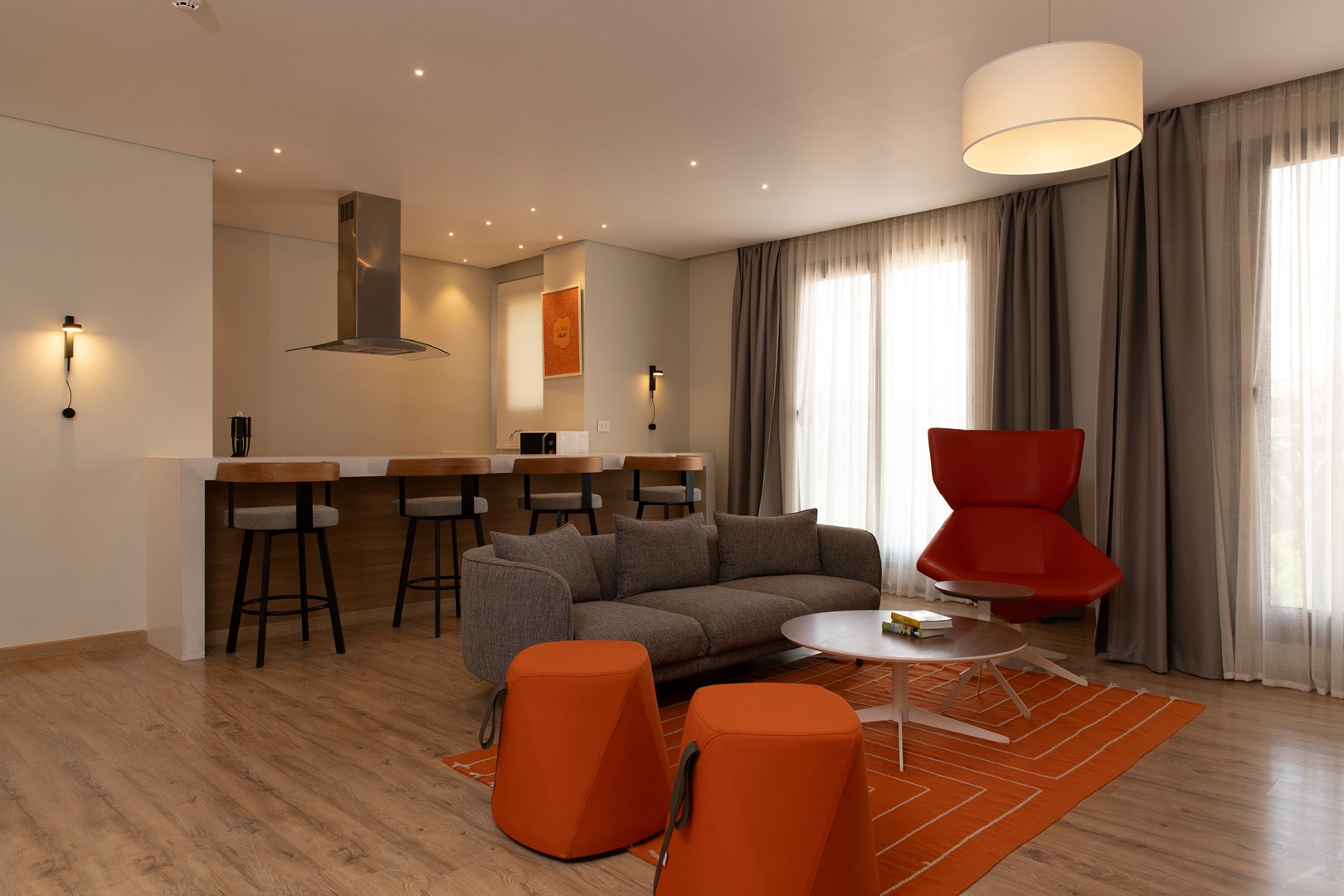 2-bedroom, 2-bathroom apartment with a designated desk space, optimum for the work-oriented resident, ready to take on the day’s grind. With an open space for communal cooking, dining, and conversing, Catalina is a mix of soft and strong, with contrasting pop of color in her furniture that amplifies the overall mood. Catalina holds space for your productivity and focus, as well as your unwinding and rest. Please note that this property accommodates ladies and families only. We appreciate your cooperation and understanding.