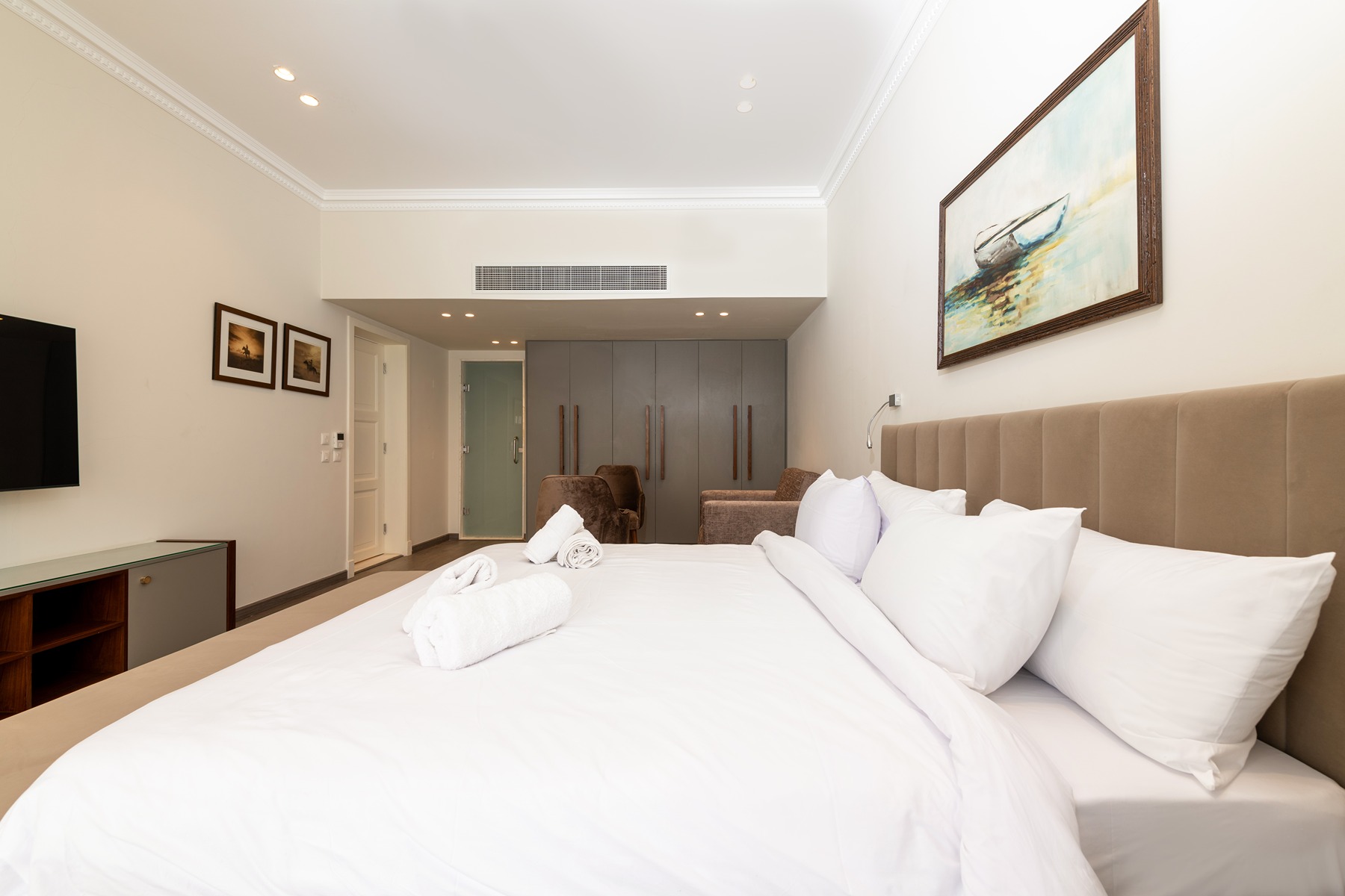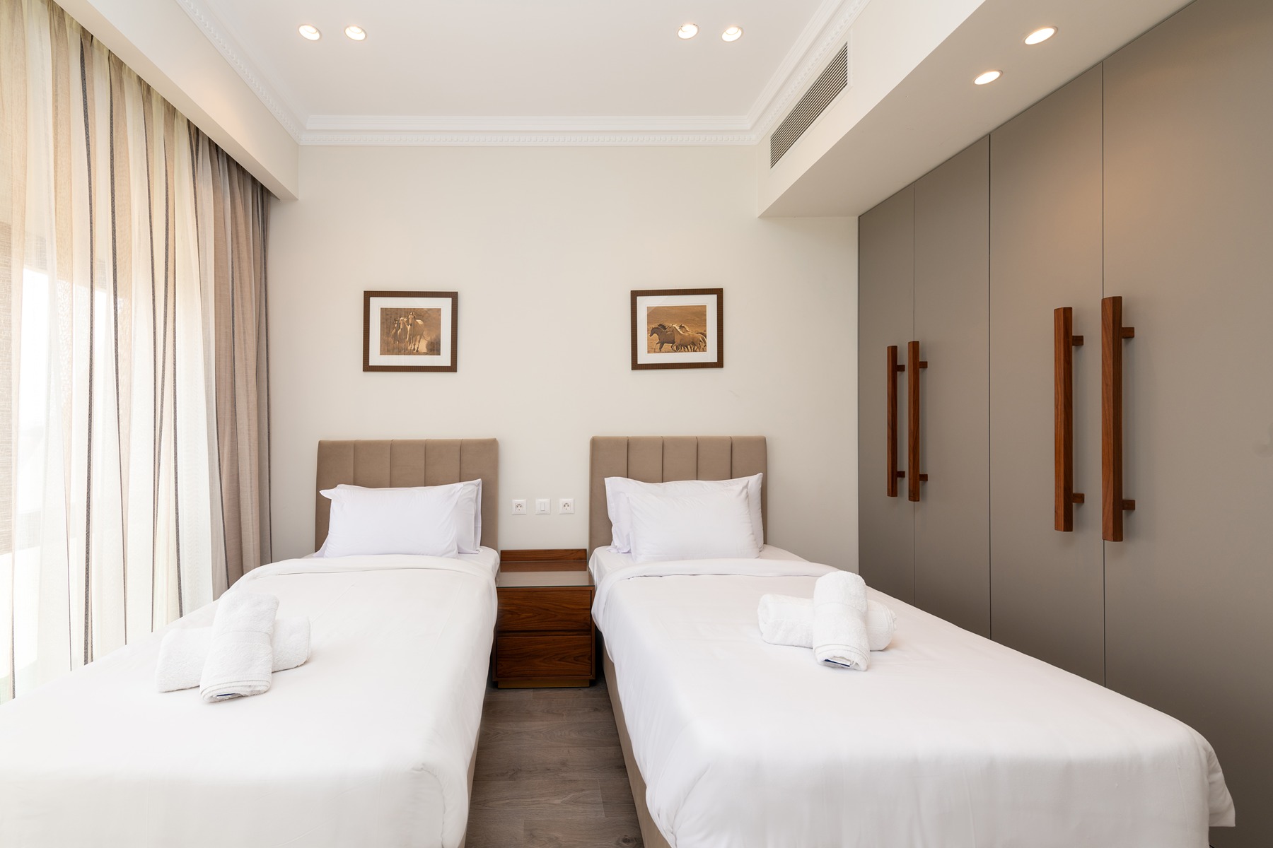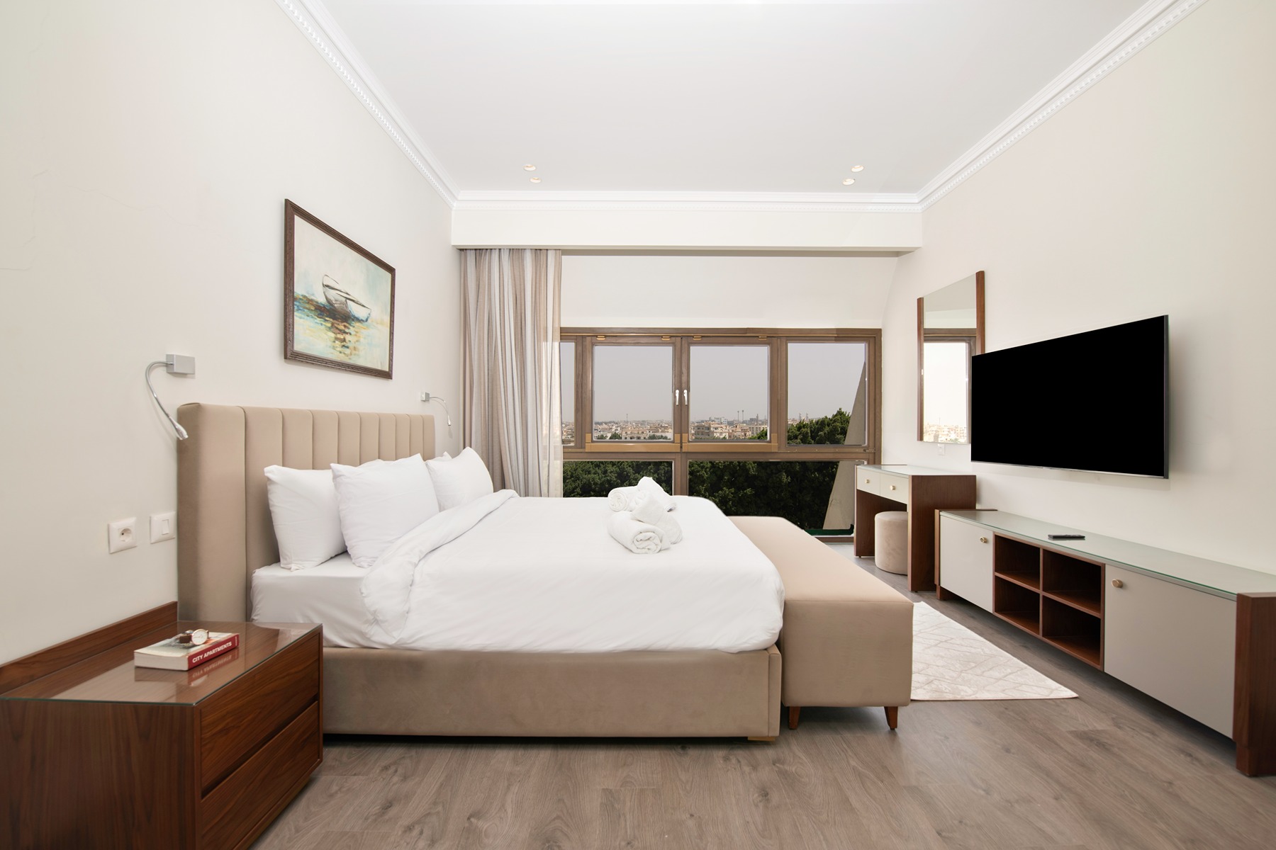 Nestled between the JW Marriot Hotel in Cairo and the Clubhouse, Mirage Residence is a one-of-a-kind location overlooking the stunning golf estate. The building has its own indoor pool and spa facilities (opening soon), with a lobby and waiting area. Guests at the Mirage Residence enjoy exclusive access to the Clubhouse, the Beach and discounts at the hotel specialty restaurants. The space The duplex @Mirage Residence features 2 bedrooms on the upper level, including a king bedroom with ensuite bathroom, and one bedroom with two single beds and an external bathroom. The lower level has the reception area, with a luxurious seating area and a cozy dining space, perfect for entertaining or relaxing. All spaces enjoy unobstructed views of the golf. Relax: Unwind in the spacious living area, which opens up to a stunning balcony offering breathtaking views of the golf course. The open kitchen is fully equipped, making it easy to prepare meals and snacks. Fully-Equipped Kitchen: Kitchen is designed to meet all your culinary needs, with top-of-the-line appliances and utensils. Cook up a storm and enjoy meals with family and friends in the dining area. Garden Delight: Overlooking the immaculate Mirage golf course, with expansive views of New Cairo beyond, the location is truly a haven from the hustle and bustle of the city. Kennah is your home away from home. Book your stay today and experience the perfect blend of luxury, comfort, and convenience.