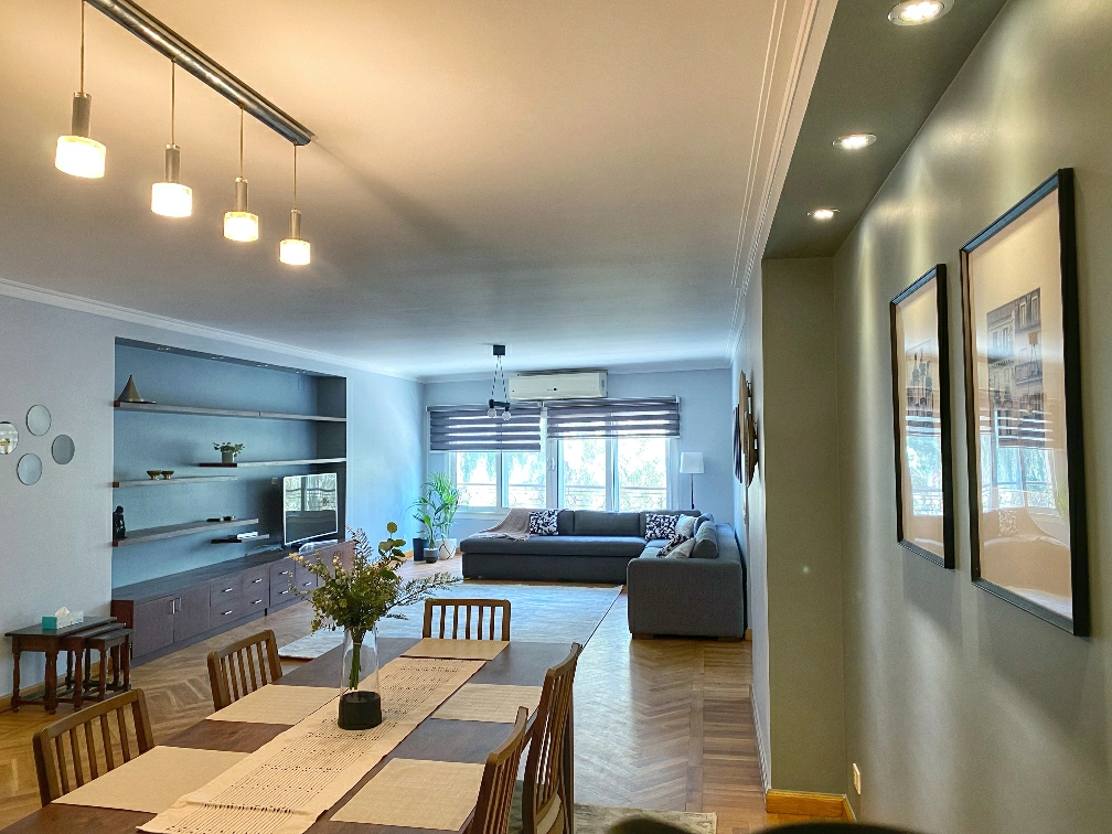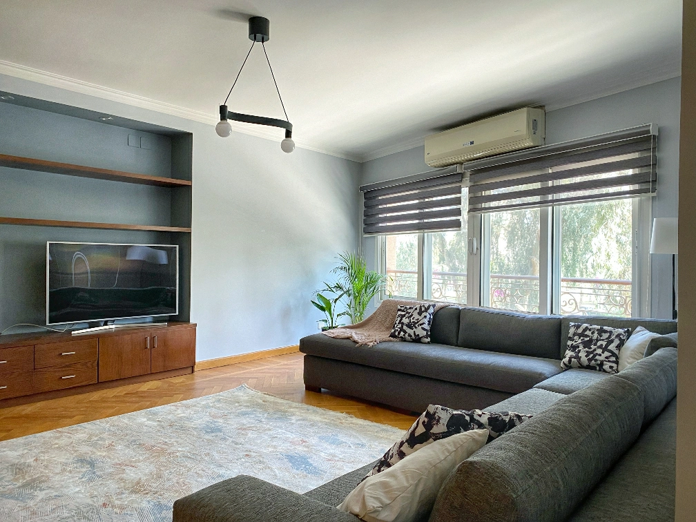This beautifully newly refurbished high-end apartment is situated in the heart of Maadi Sarayat. The location itself is amid a bustling, yet peaceful neighborhood in close proximity to various restaurants and coffee shops. Amenities such as supermarkets, hairdressers, laundry, and gyms are within walking distance. Public transportation is at your doorstep, the metro is a 5 minutes’ walk and taxis and Ubers Are available within minutes.