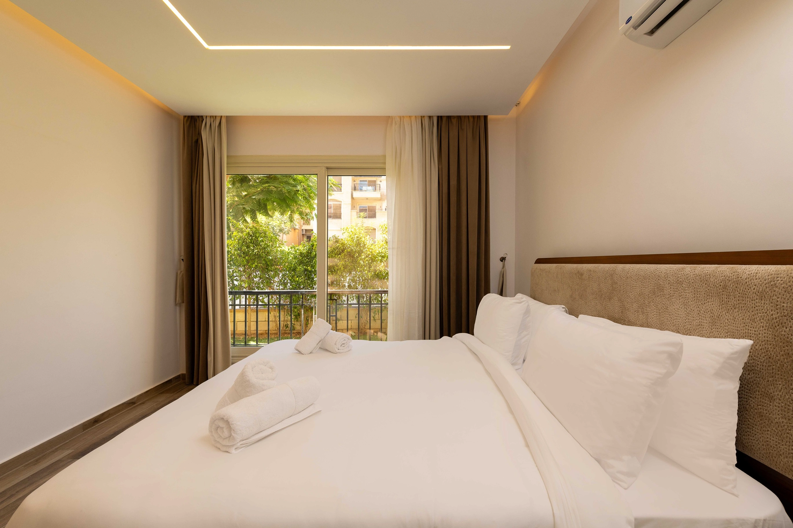 Enjoy a calm stay in this modern serviced apartment at Stone Residence. Just off the Ring Road, you’re minutes from Maadi, Katameya Heights, and New Cairo’s main shopping and dining spots. The Space The apartment includes its own private garden overlooking the water feature a quiet spot to unwind after a busy day. Inside you’ll find: ● 3 bedrooms with 4 comfortable beds ● 3 bathrooms for extra privacy Please note that this property accommodates ladies and families only. We appreciate your cooperation and understanding. ● A bright living and dining area made for gatherings ● A fully equipped kitchen for everyday cooking Neighborhood Stone Residence is a gated community with greenery, gardens, and a family-friendly atmosphere. You’ll enjoy the peace of the compound while still being close to Cairo Festival City, Point 90, and Downtown Katameya. Cairo International Airport is only a short drive away, making the apartment convenient for both short business trips and longer family stays