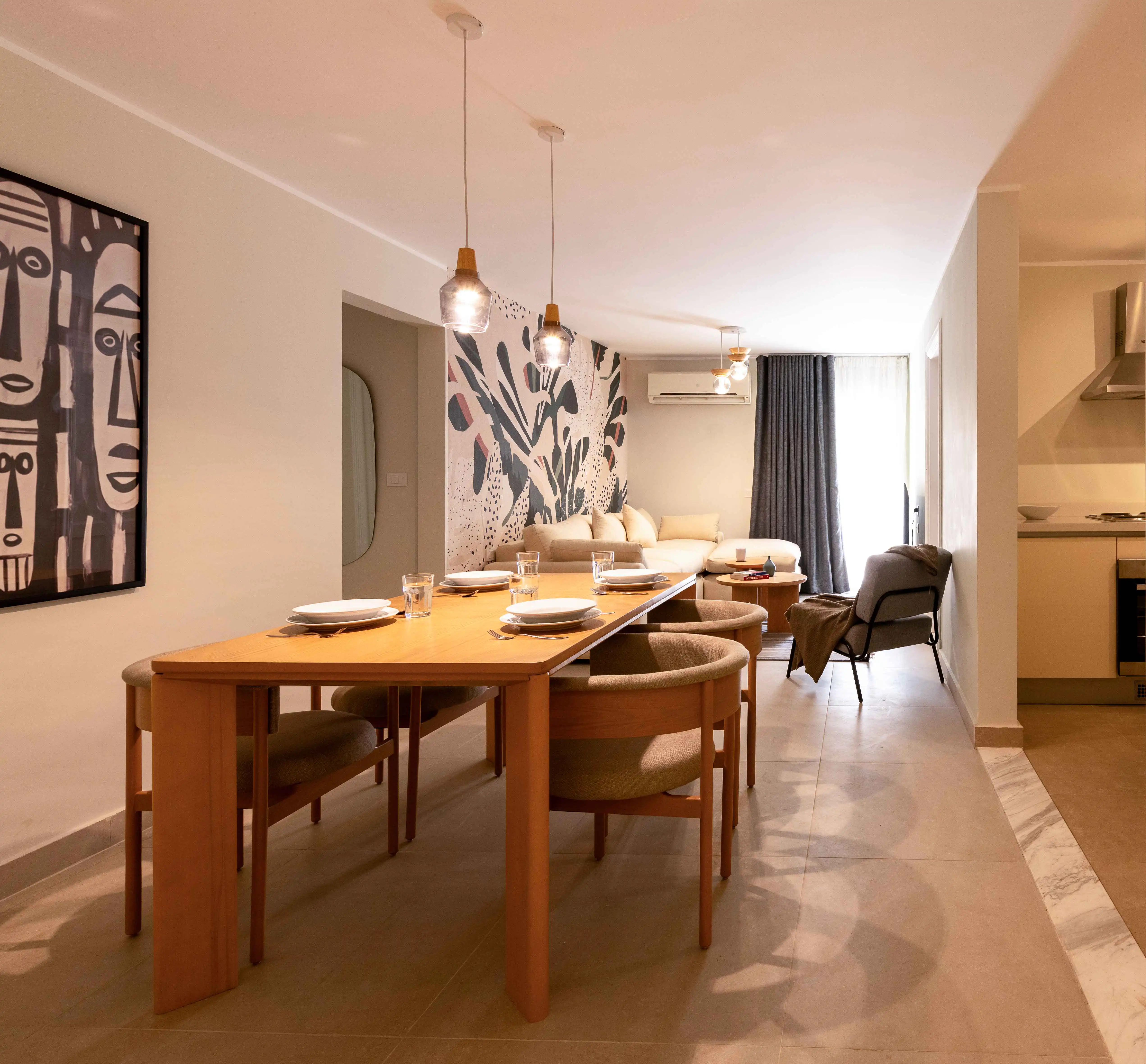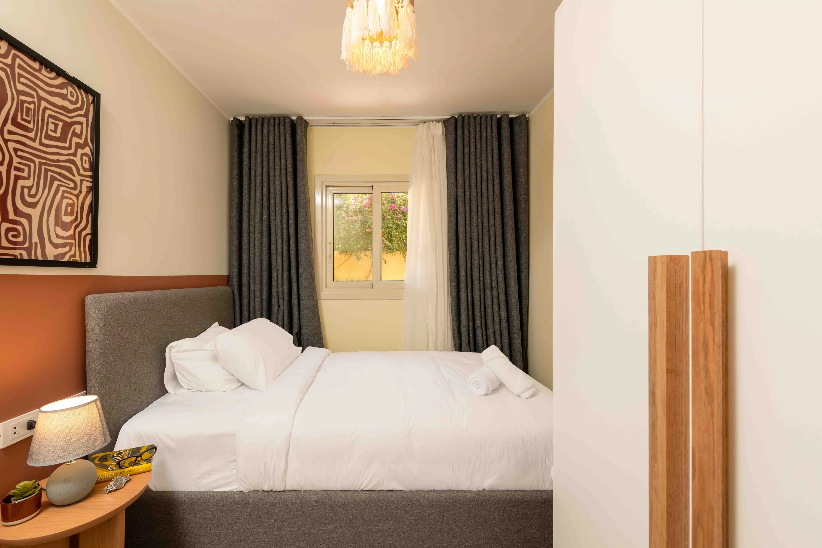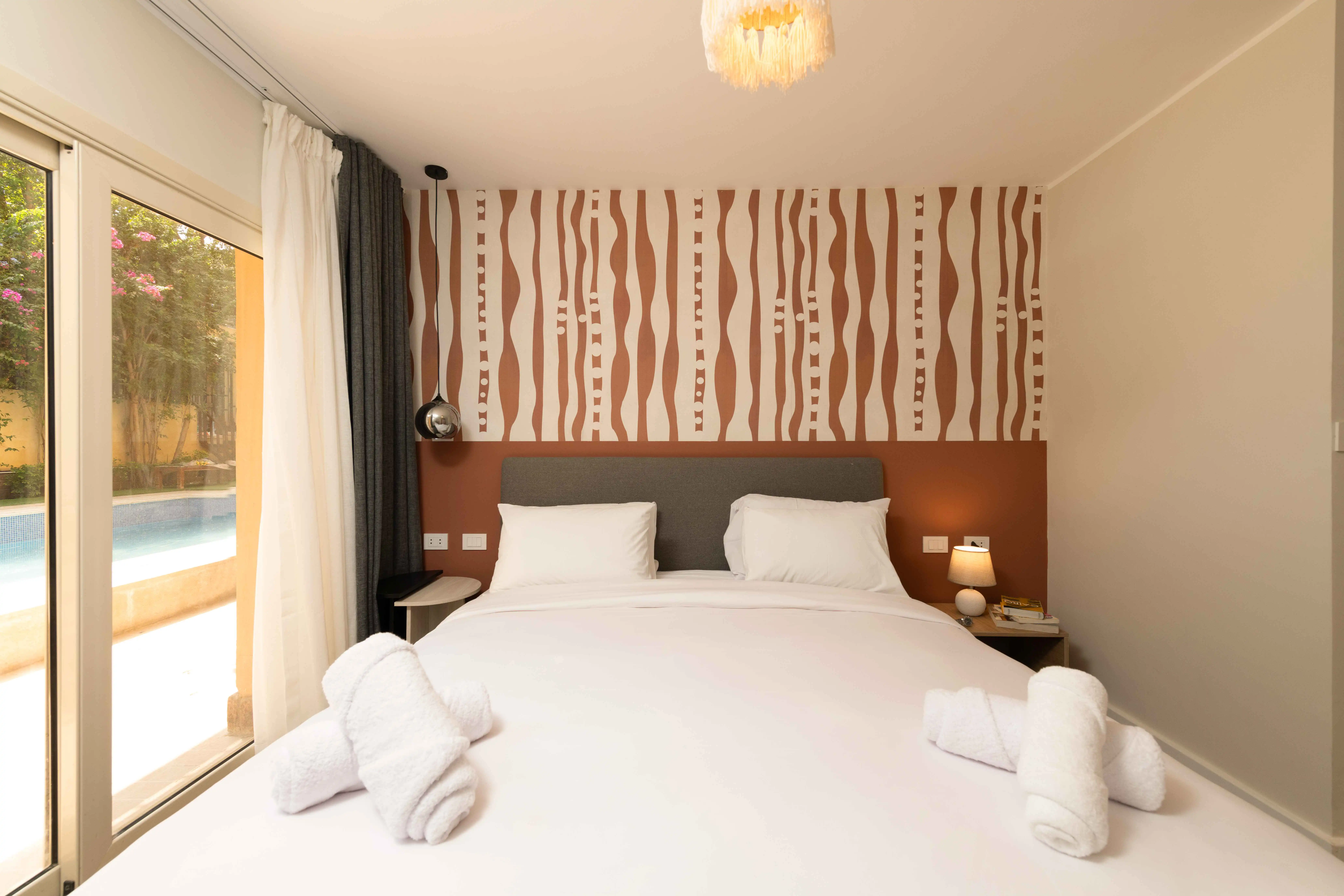 Unwind in a bright, modern 2-bedroom apartment in October City, just off Mohamed El Fatah Street featuring exclusive, direct access to your very own private swimming pool, just steps from the living room. Whether you're here to relax, explore, or work remotely, this apartment offers the best of both worlds: resort-style living with the freedom and privacy of home. Start your mornings with a refreshing dip, take afternoon breaks by the poolside, or enjoy peaceful evening swims under the stars all without ever leaving your door. This rare setup transforms your stay into a true escape. Perfectly located just minutes from Mall of Arabia, Mall of Egypt, and a short drive to the Giza Pyramids and Grand Egyptian Museum (GEM) it's ideal for families, couples, or business travelers who want both comfort and proximity to iconic landmarks.