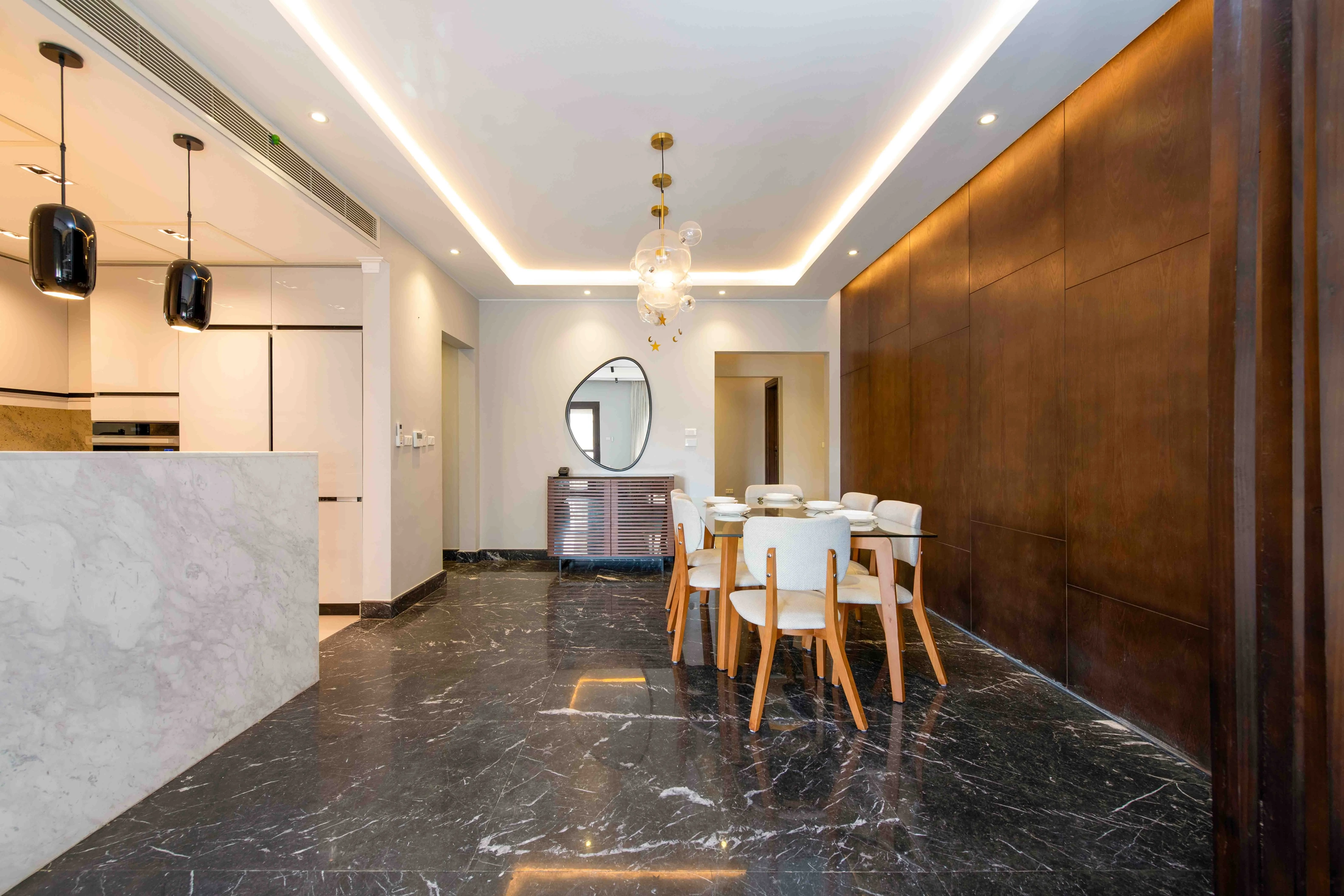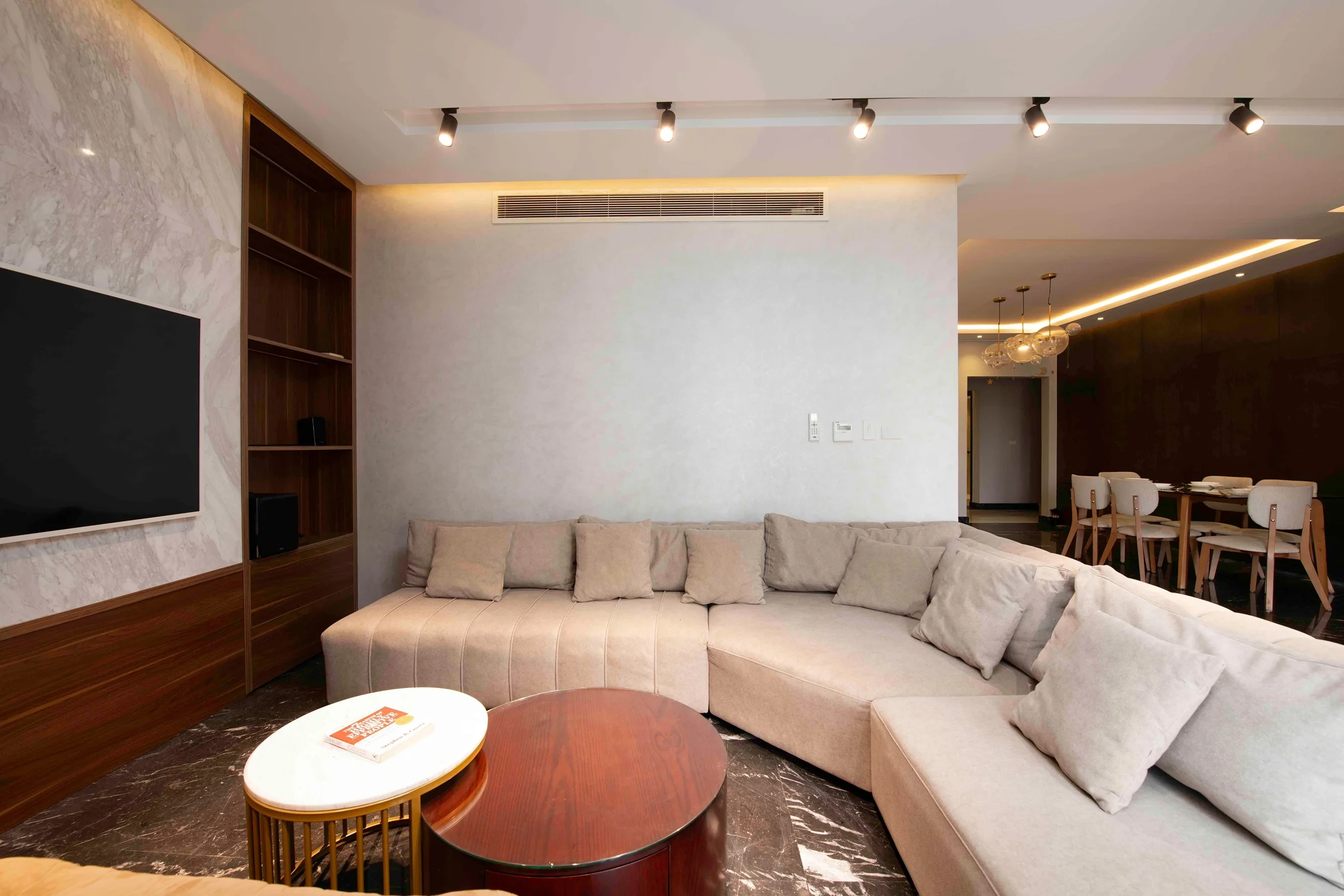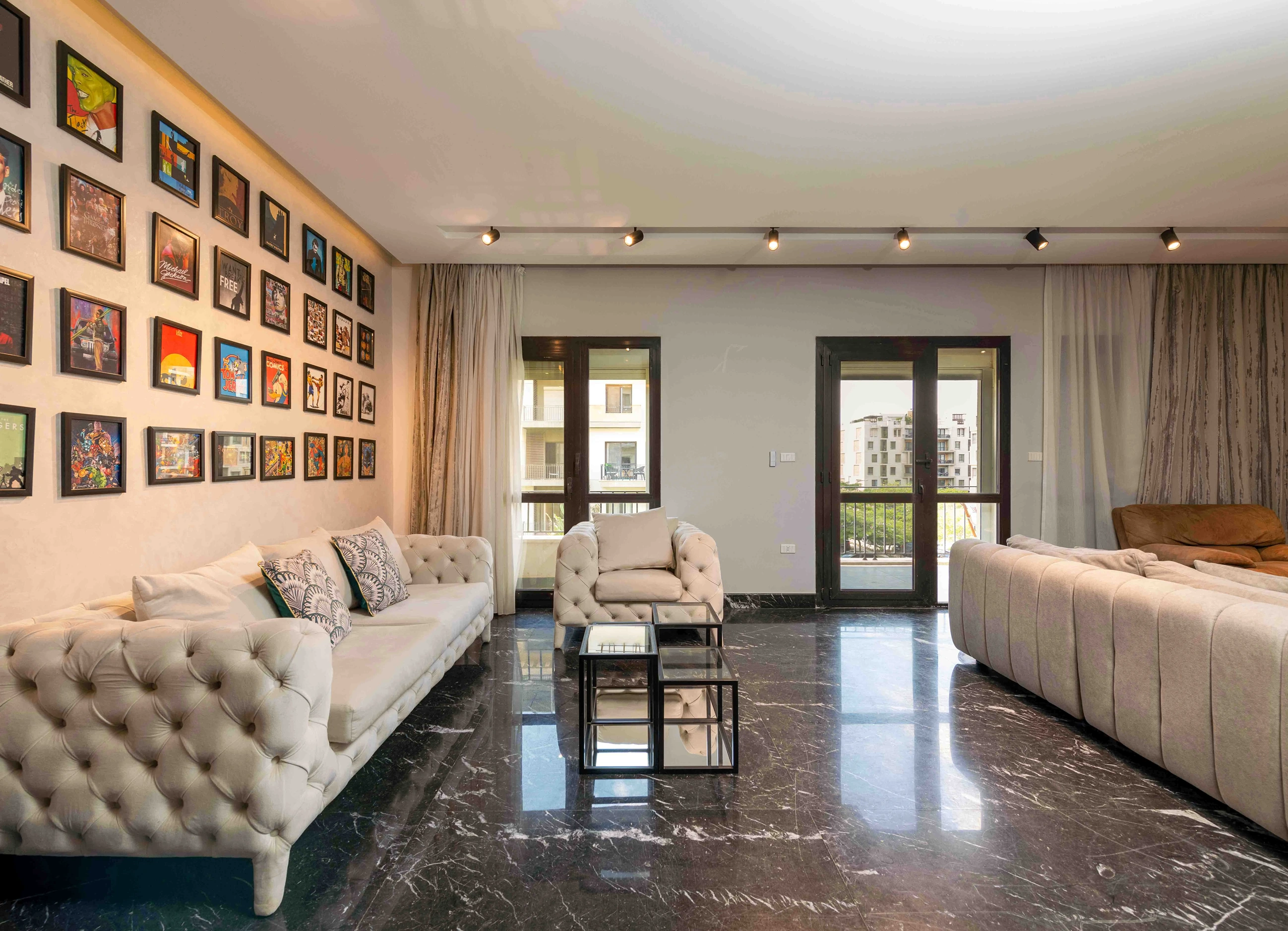 Experience modern city living in a stylish 3-bedroom, 2-bath apartment set inside a SODIC gated compound in East Cairo. Enjoy 24/7 security, controlled access, quiet internal streets, and on-site parking,a calm, family-friendly base with landscaped courtyards and a leafy balcony outlook. You’re a short drive from major malls, cafés, and everyday essentials, with easy ride-hailing access. EDNC-Sodic Mall sits within the compound itself, providing a lively selection of cafes, restaurants, and retail outlets right at your doorstep. This home blends contemporary finishes with warm, practical details. The open-plan living and dining area features a statement art wall and flows into a fully equipped kitchen for relaxed meals or entertaining. Bedrooms include a serene master with a plush king bed and TV wall, plus two additional rooms for guests or kids. Three modern bathrooms, A/C in every room, fast Wi-Fi, a Smart TV, blackout curtains, and an in-unit washer round out the comforts. The furnished balcony is perfect for morning coffee or golden-hour unwinding.