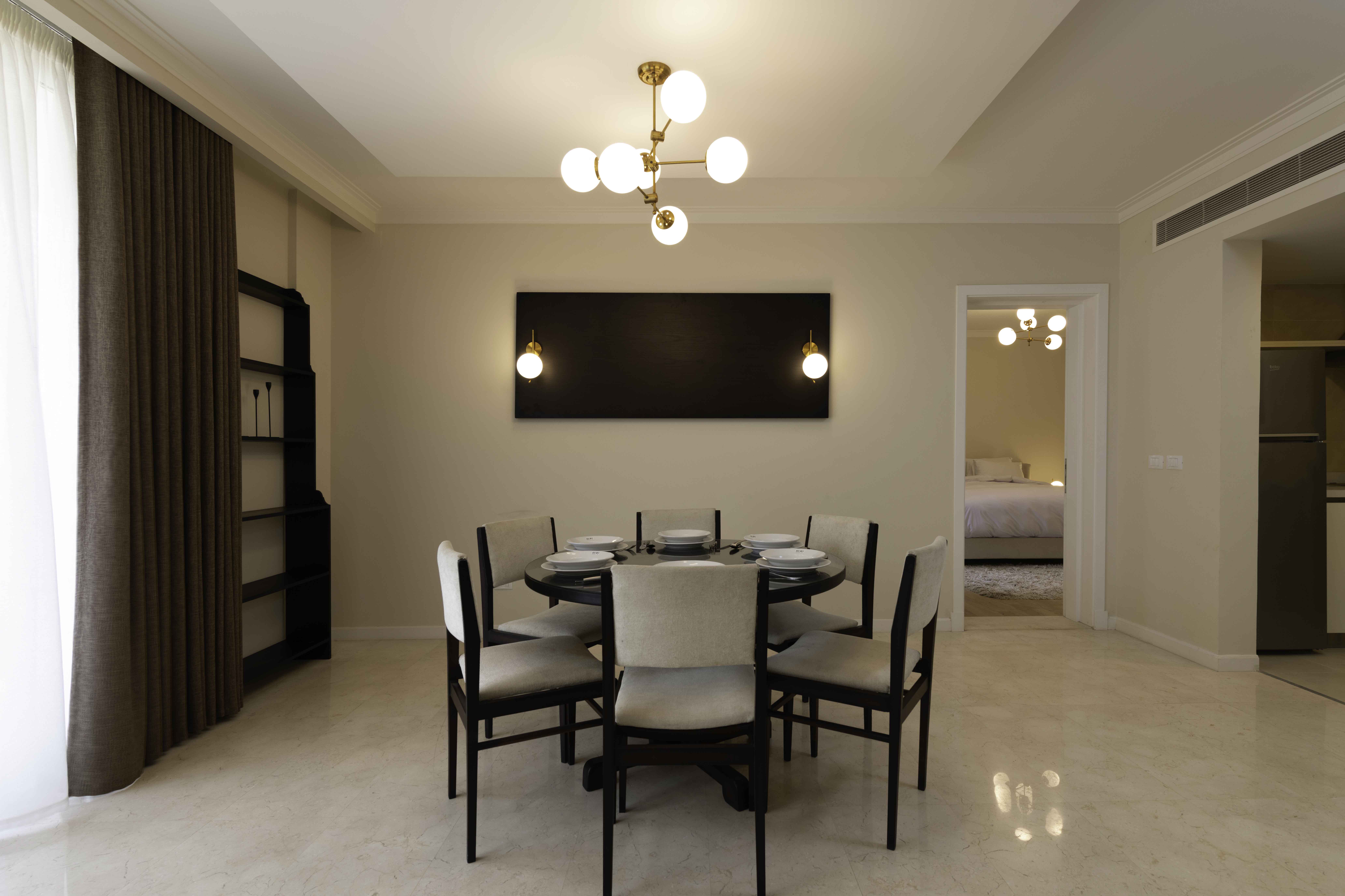 Unwind in a bright 1-bedroom, 2-bath apartment set inside the exclusive Pyramid Hills gated community located in West Cairo compound. A wide balcony, soft neutral finishes, and comfortable seating make it a calm base minutes from the Pyramids and GEM, Mall of Egypt, main roads. Enjoy 24/7 security, controlled access, and on-site parking ideal for business trips or a couple’s city break. The compound also has coffee shops and fine dining within its boundaries. An open-plan living/dining area flows into a fully equipped kitchen for easy meals. The serene master bedroom features ample wardrobe space and an en-suite with walk-in shower, plus a second guest bathroom for convenience. Comforts include A/C in all rooms, fast Wi-Fi, Smart TV, blackout curtains, and an in-unit washer. Slide open the doors to a furnished balcony overlooking landscaped internal streets perfect for morning coffee or sunset unwinding.